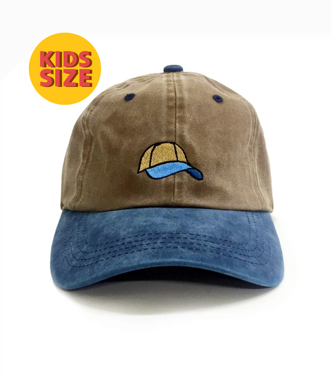 - ✅ Two-tone Tan / Blue 6-Panel Kids Dad Hat